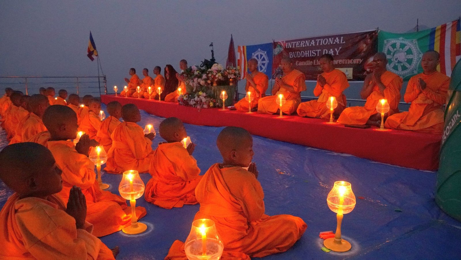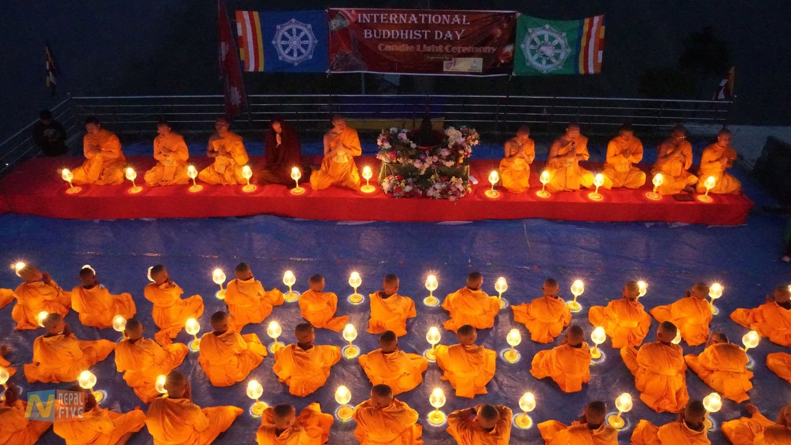सोही दिन साँझ विहारको माथिल्लो तल्लाको चैत्य सामुन्ने सबैजना बसी धम्मचक्कपवत्तन सुत्त पाठ गरीसकेपछि हातमा मैनवत्ती बालेर हातमा लिई चैत्यलाई तिन पटक परिक्रमा गरेर मैनबत्तीको दीप प्रज्वलन गरी अन्तर्राष्ट्रिय बौद्ध दिवस मनाइयो ।